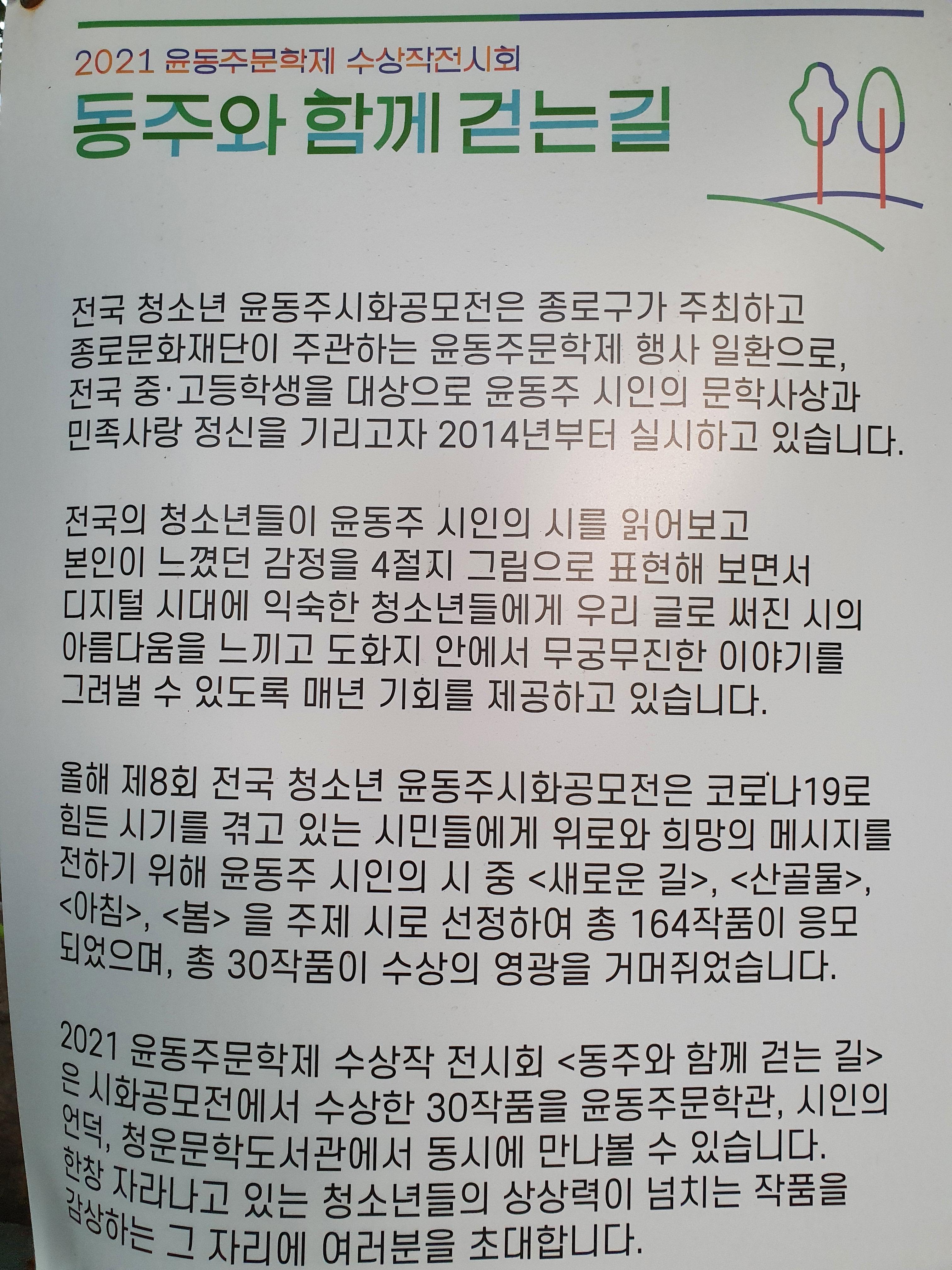 2021 윤동주문학제 수상작 전시회