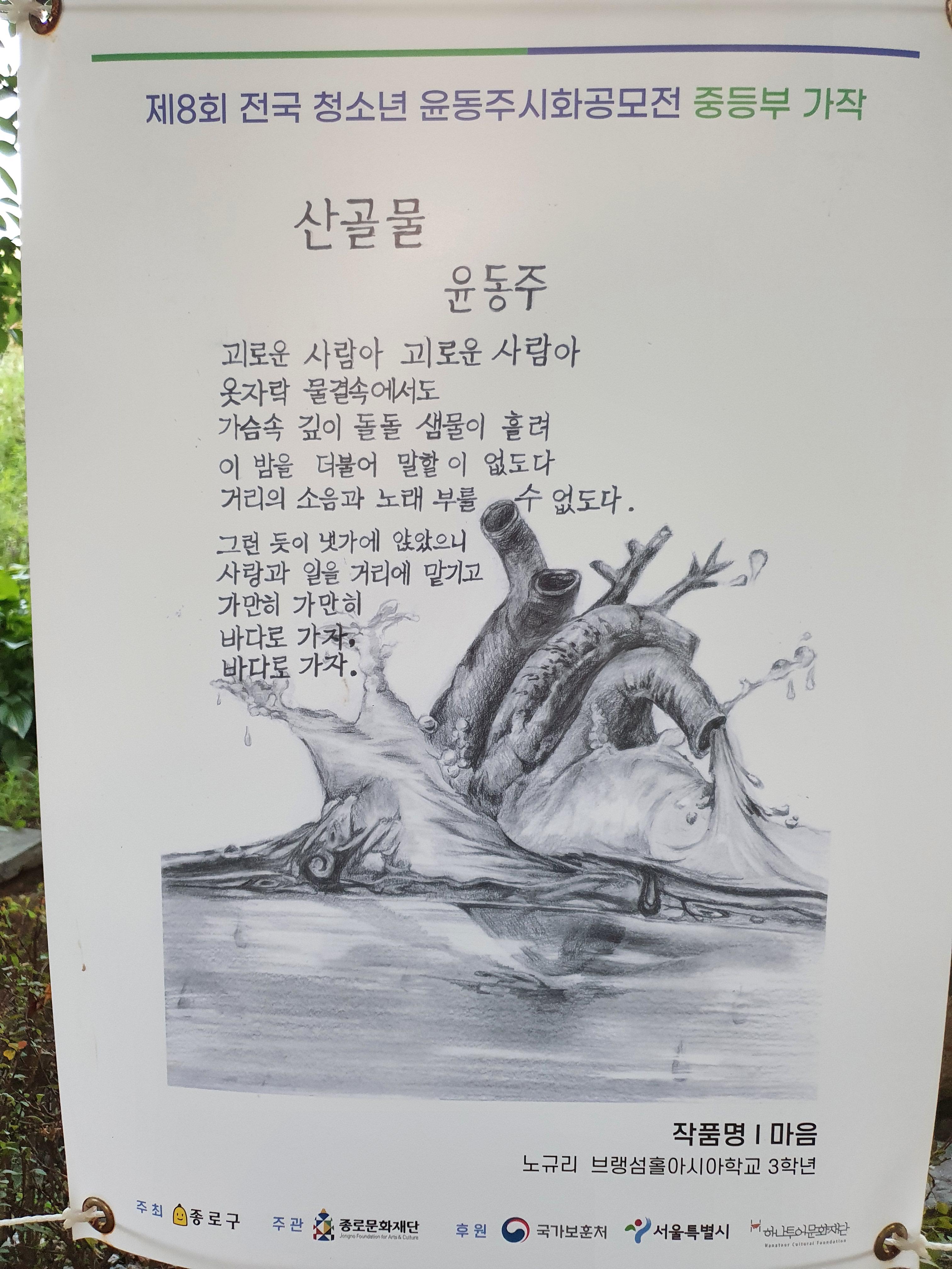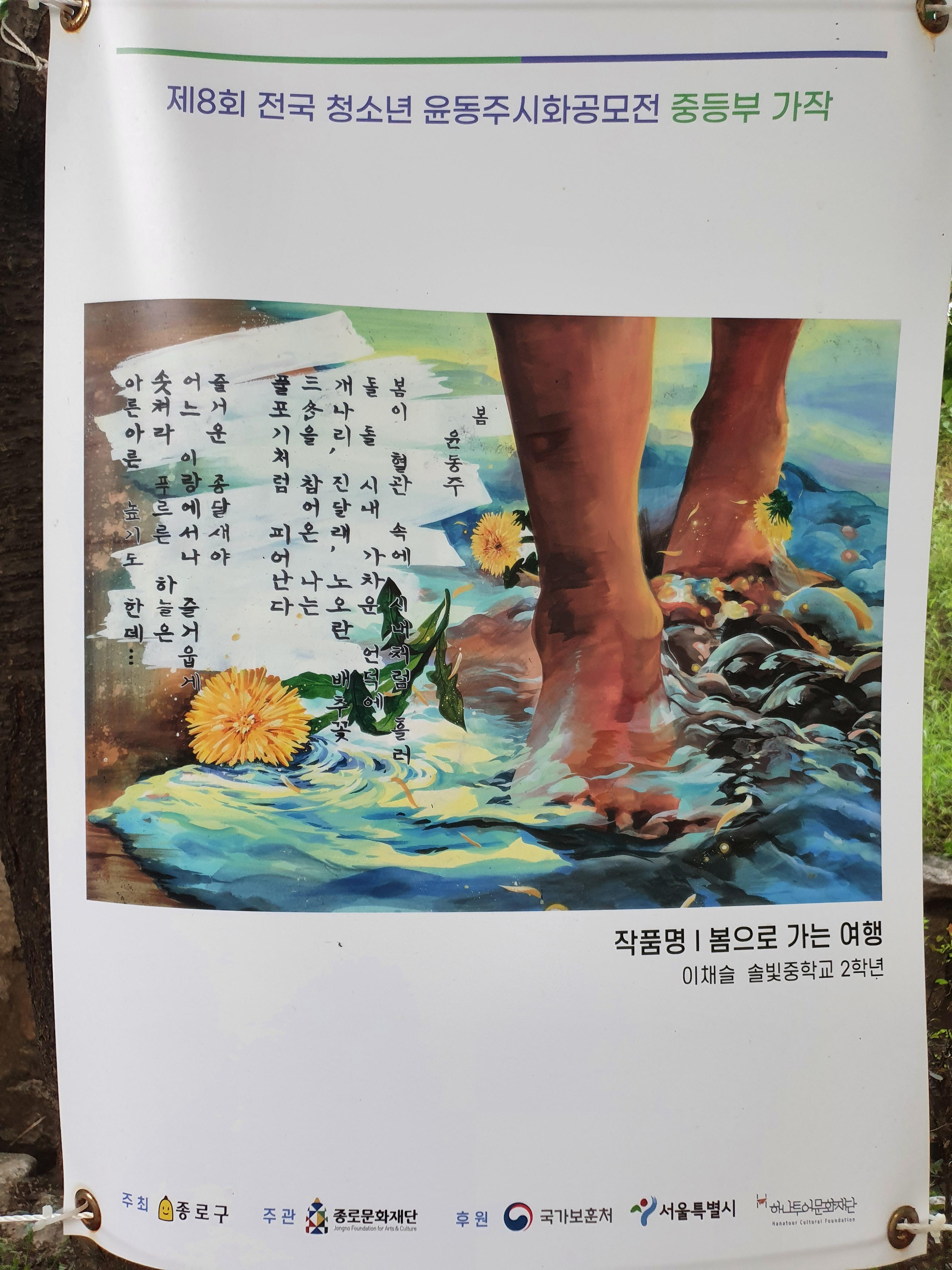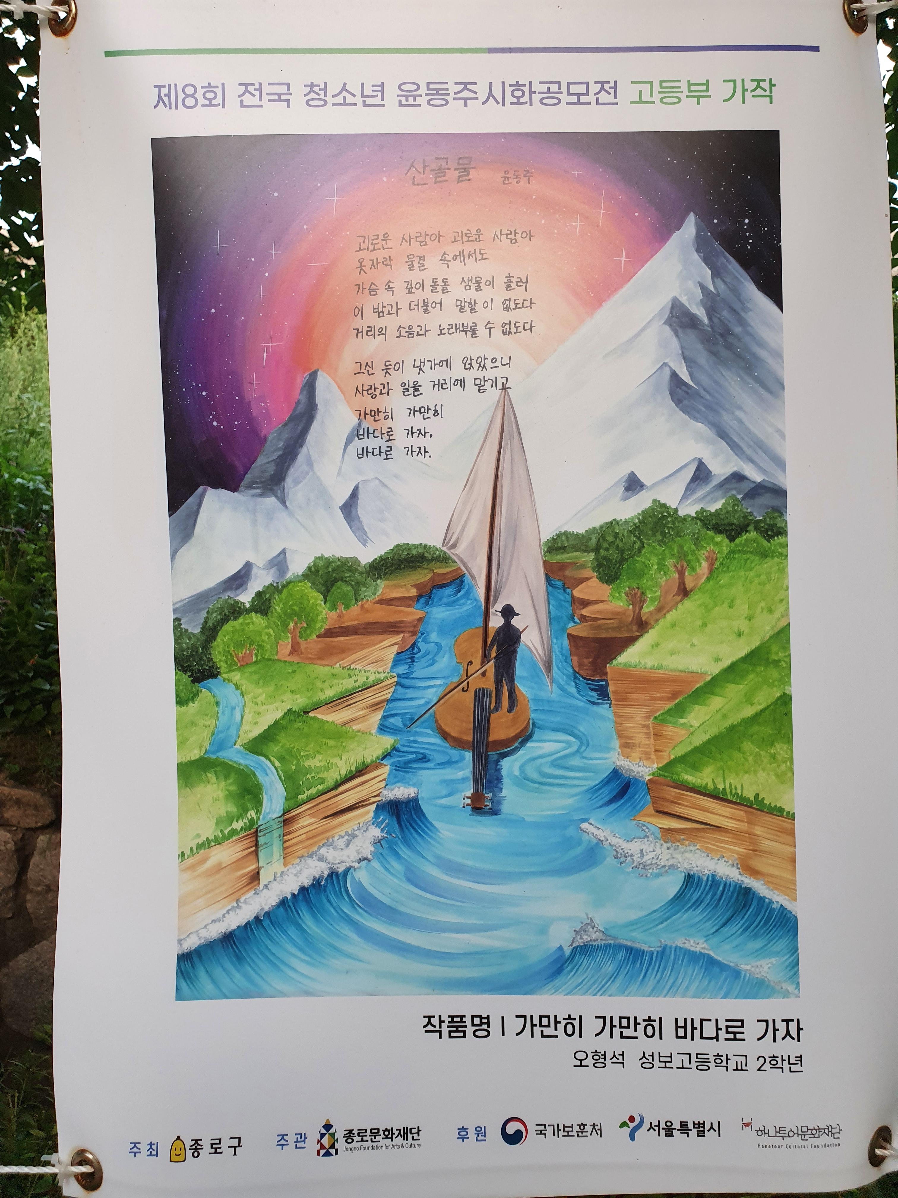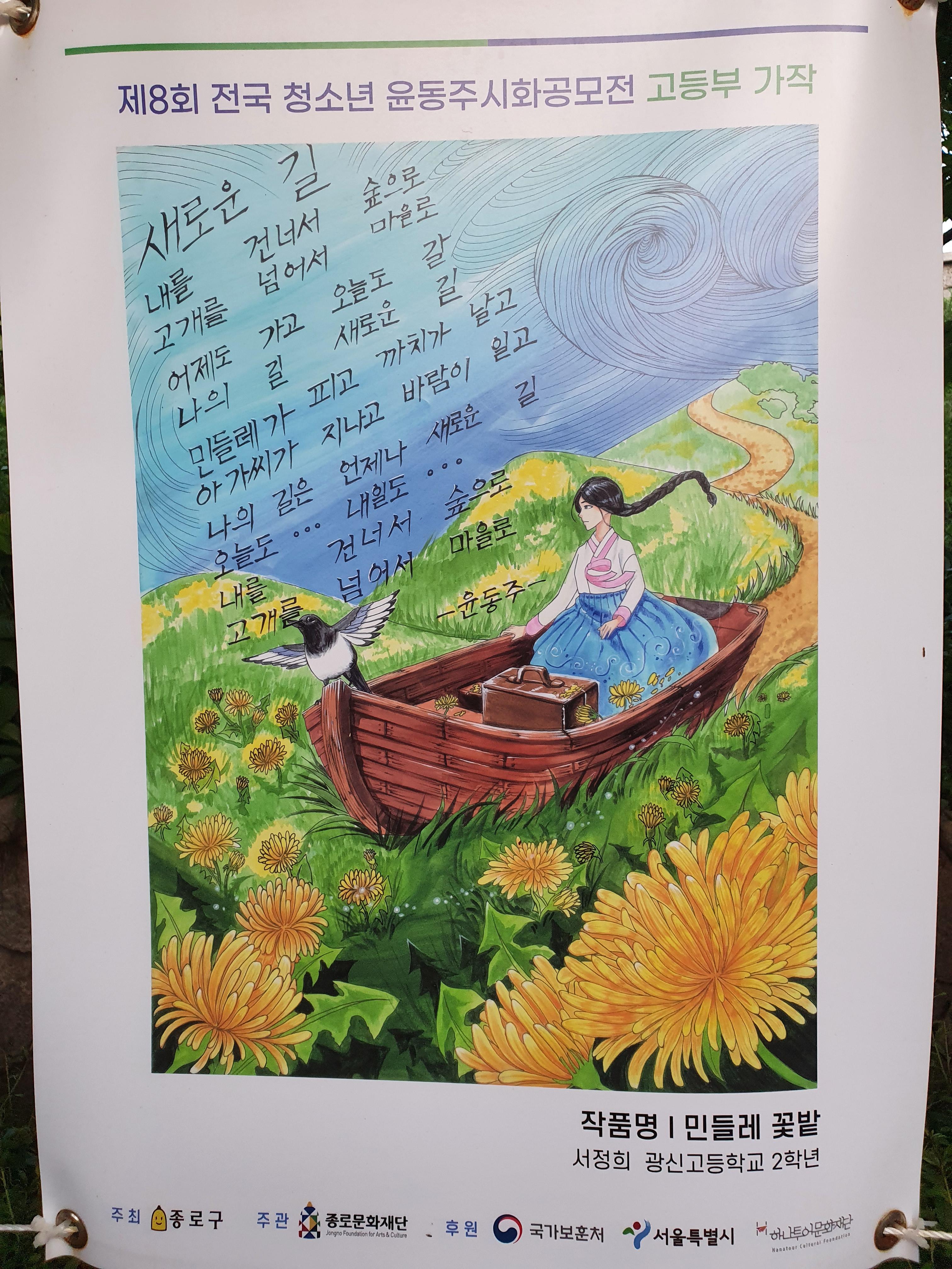 지난 6월 30일부터 8월 15일까지 종로구 부암동 시인의 언덕에서 제8회 전국 청소년 윤동주 시화 공모전 수상작 전시회가 열렸습니다.