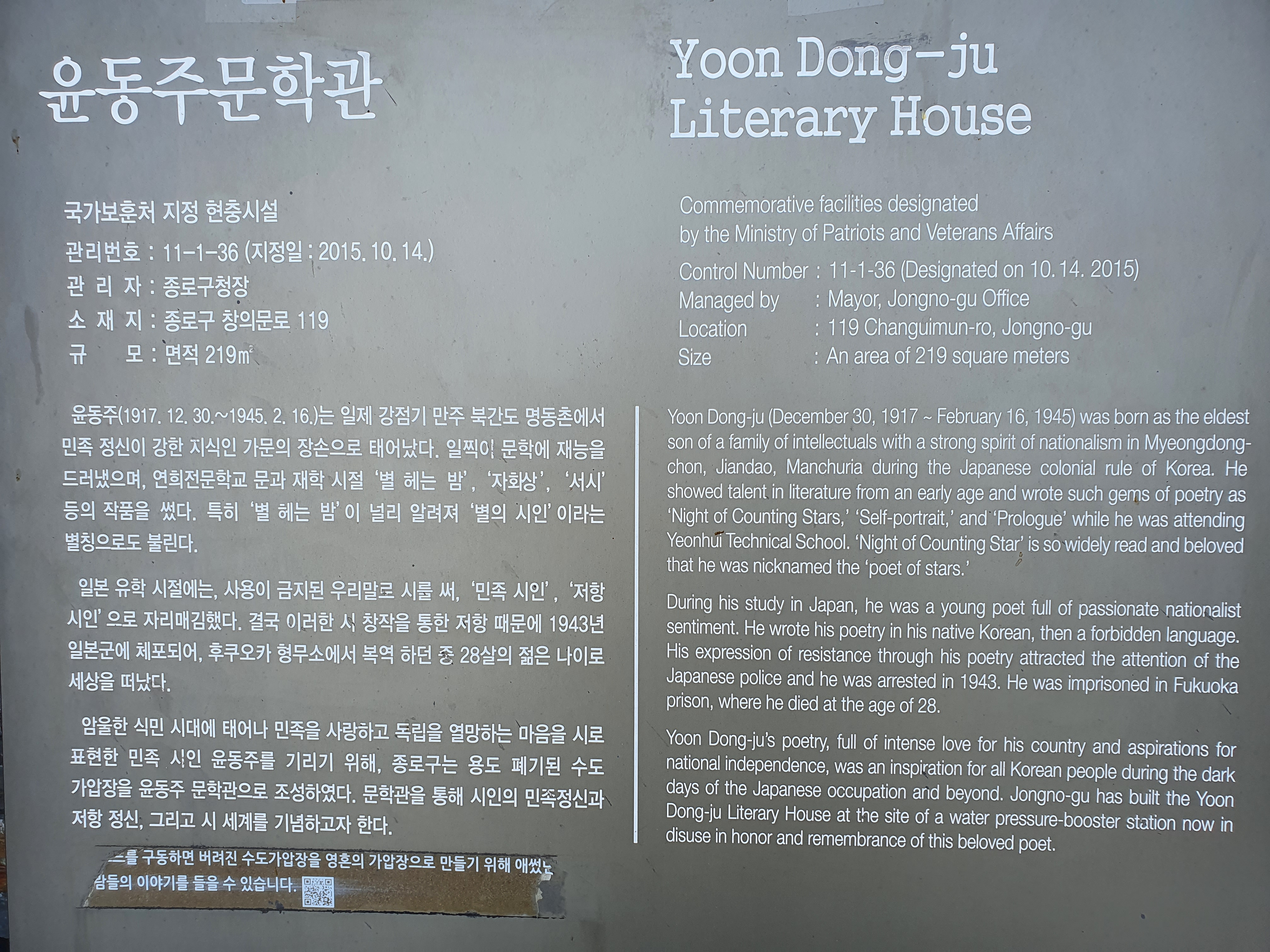 이 행사는 종로구가 주최하고 종로문화재단이 주관하는 윤동주문학제 행사의 일환으로 개최되었는데요,